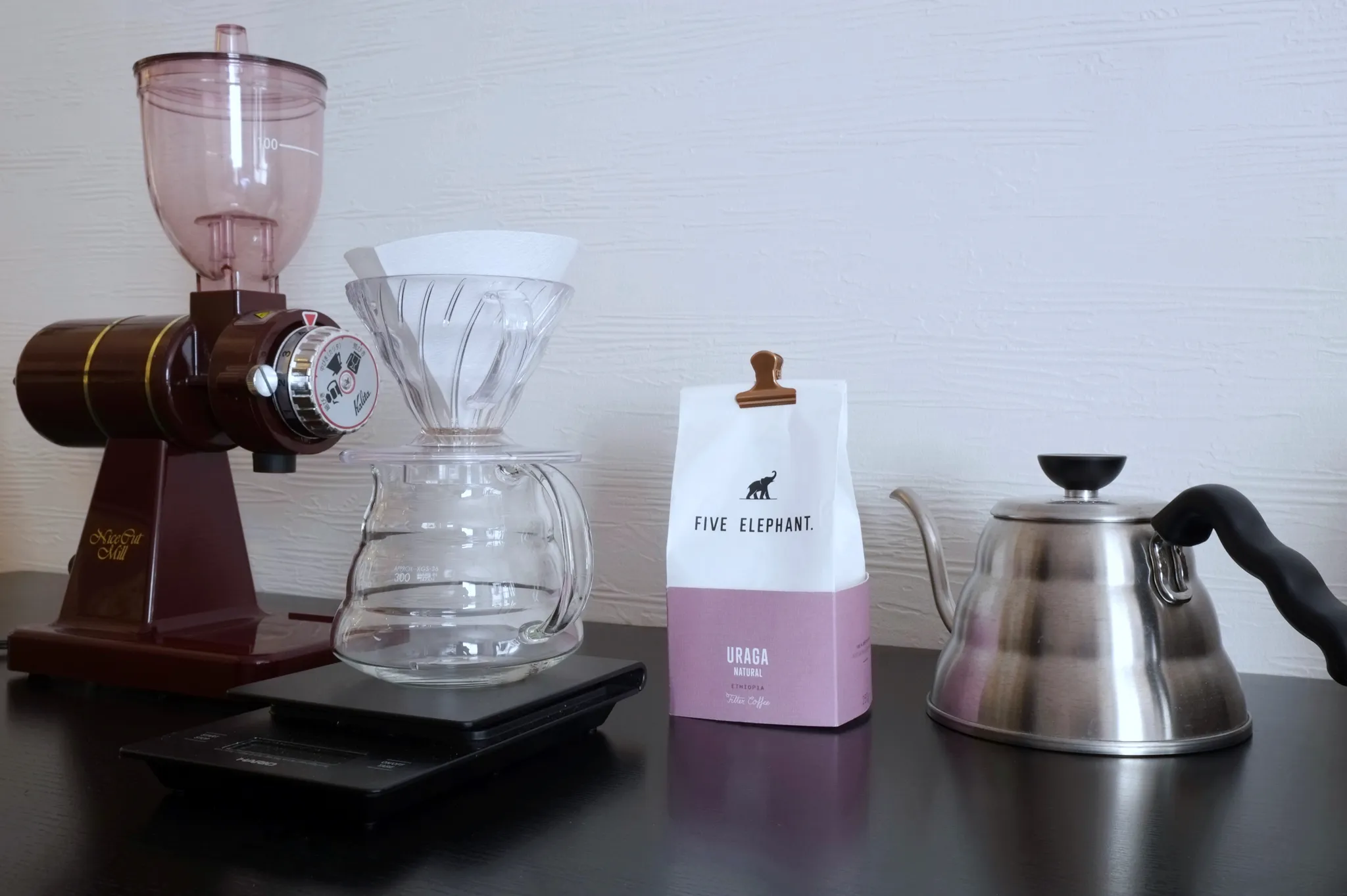 これまではマグカップに直接抽出していましたが、サーバーを使うことでコーヒーが落ちていく様子や、抽出の過程そのものも楽しめるようになりました。透明なガラス越しに見える琥珀色の液体が溜まっていく光景は、思わず写真に撮りたくなる美しさがあります。少しずつ揃えてきたコーヒー器具、その最後のピースであるこのサーバーが加わったことで、コーヒーを淹れる時間がより特別なものになった気がします。