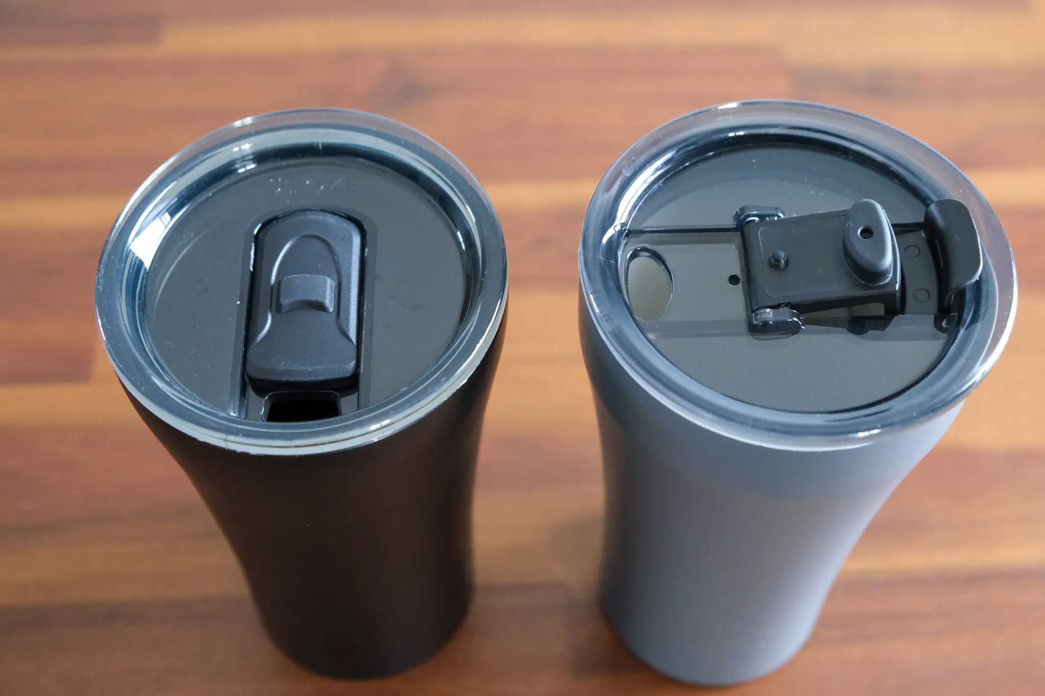 右側がアップデートされた完全止水タイプの蓋です。数ヶ月使用してみましたが、中身が溢れるようなことは一度もありませんでした。